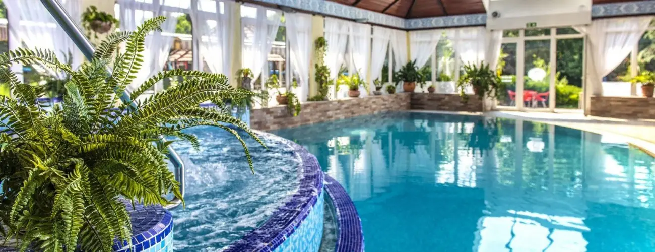 fedett úszómedence • szabadtéri úszómedence • szauna • Spa & wellness center • manikűr • masszázs • pedikűr • pezsgőfürdő • élménymedence • gőzfürdő • infraszauna • finnszauna • merülőmedence • Kneipp taposómedence • napozóterasz • közvetlen átjárás a városi fürdőbe • Úszómedence • Pezsgőfüdő • Hidromasszázs, Gejzír • Kültéri medence
