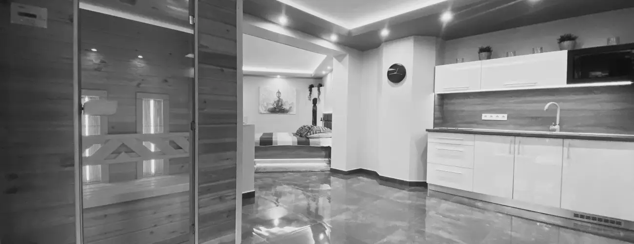 Képzeljen el egy felsőkategóriás, luxus magánlakosztályt, ahol sűrű lombú erdők, festői szépségű tájak ölelésében teljes körű, romantikus wellness pihenés feledteti a rohanó mindennapokat. A 2 fő zavartalan, intim kikapcsolódására megálmodott miskolctapolcai The Jakuzzi Room elszeparált, sikkes lakosztálya egyedülálló búvóhelyet kínál a nyüzsgő hétköznapokból való meghitt elrejtőzéshez. Modern eleganciát sugárzó, pazar szoba: itt a tökéletes feltöltődés élményében lehet majd részük.