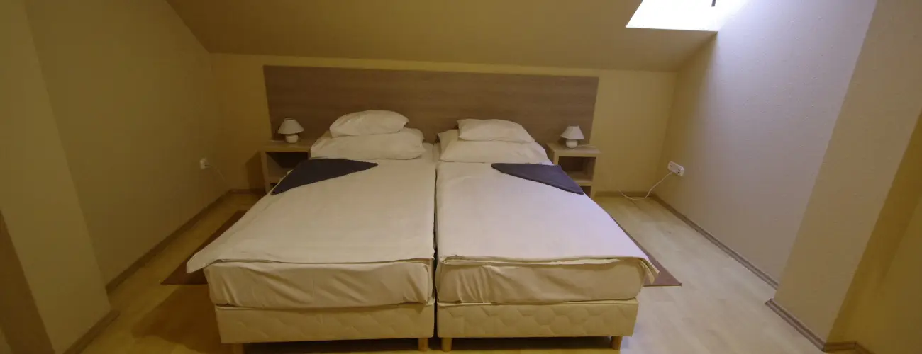 A hotel 26 szobája összesen 65 fő elszállásolását teszi lehetővé, a 3 darab egyágyas és a 16 darab kétágyas szoba mellett 7 apartman is található az épületben. A szobák felszereltségéhez hozzátartozik a fürdőszoba, a légkondicionálás, a hűtőszekrénnyel és mikróval felszerelt mini konyha, a kábeltévé, a telefon és az ingyenes Internet csatlakozás (kábel és vezeték nélküli); igény esetén pótágyak is rendelkezésre állnak.