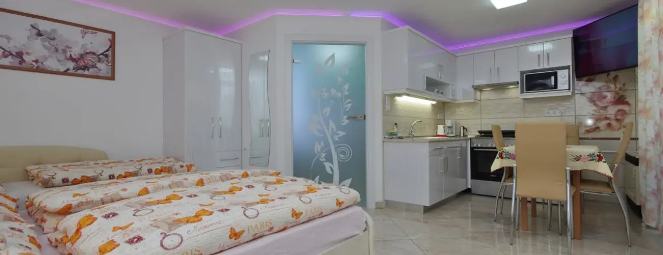 Szálláshelyük a Várfürdő vonzáskörzetében, csendes utcában található. Teljesen újonnan épült udvarra nyíló klimatizált és akadálymentesített Deluxe besorolású stúdió apartman. Kiemelkedő minőségű berendezéssel van felszerelve. Jól felszerelt konyha sarok is tartozik hozzá. A hűtőszekrény fagyasztó résszel ellátott. Az udvaron grillezési, szalonna sütési és bográcsozási lehetőség van, melyhez zárt és őrzött, kamerákkal felszerelt parkoló is tartozik. A szállásra kisállat nem vihető be. Dohányzás az apartman előtti udvari kijelölt dohányzó sarokban lehetséges. Az utcai kapuk elektromos távirányítóval működnek. Amennyiben autóval közlekednek, ez is az Önök kényelmét szolgálja, mert parkolás esetén nem kell az utcán kiszállni. A szálláshelytől 300 méterre találhatóak a horgász tavak. A fűtést szabályozható gáz konvektor szolgáltatja. Az év minden napján várják kedves vendégeiket.